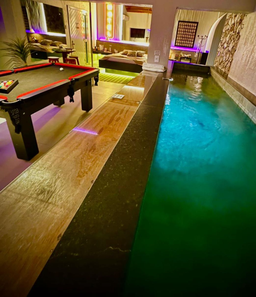 Mergulhe em novas sensações na Suíte Master! Com ampla piscina aquecida e iluminação personalizada você cria o ambiente perfeito para celebrar, relaxar e aproveitar! Seja a dois, seja com os amigos aqui a festa está garantida com luxo e privacidade.