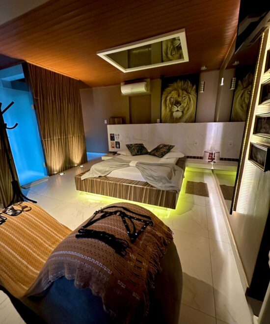 Explore cada canto desta suíte e entregue-se a uma experiência íntima como nenhuma outra. Na Suíte Selvagem, a luxúria encontra a natureza, e o resultado é uma aventura sensual que você nunca esquecerá.
