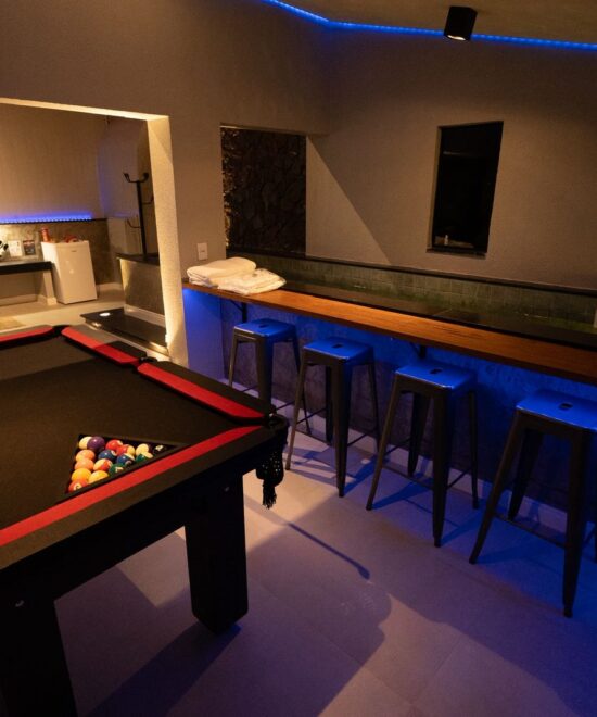 Bem-vindo à suíte Acqua Play, onde o conforto e o entretenimento se encontram em um amplo espaço de 50m².